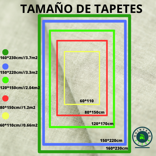 - El tamaño regular del tapete de centro de mesa o sala es de 1.60 * 2.30 metros.